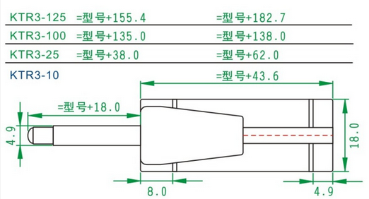 KTR3彈簧內(nèi)置式自恢復(fù)位移傳感器尺寸圖如下: