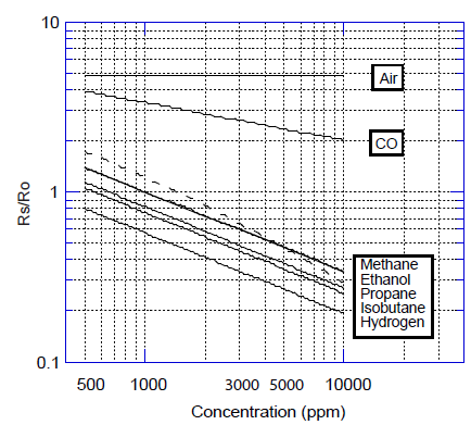 Ro = 傳感器在1000ppm 甲烷中的傳感器電阻值