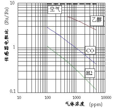 Ro =1000ppm 一氧化碳中的電阻值