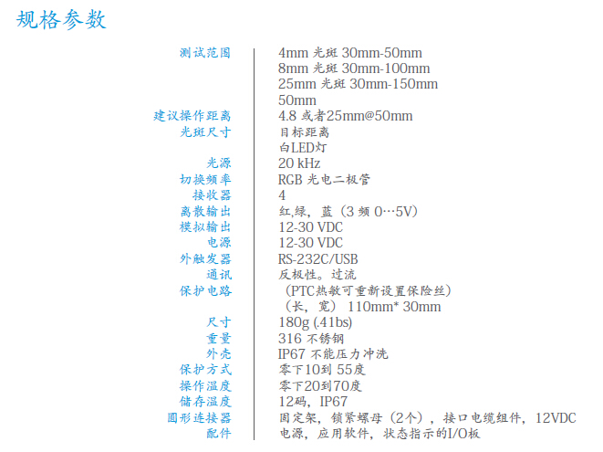 四、顏色傳感器ColorMax HEX規(guī)格參數(shù)
