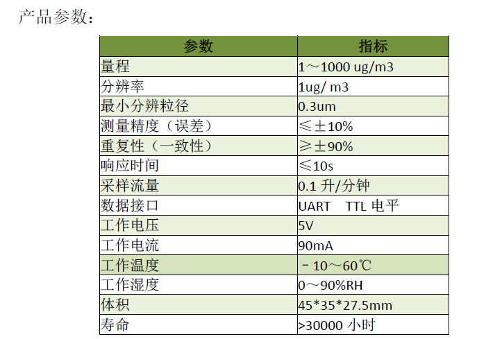 五、PM2.5激光傳感器-YT01產(chǎn)品參數(shù)