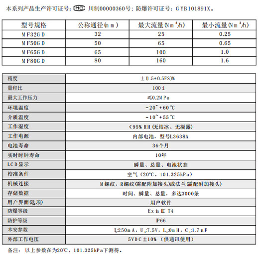 四、MF-GD系列中低壓質(zhì)量流量計型號以及參數(shù)