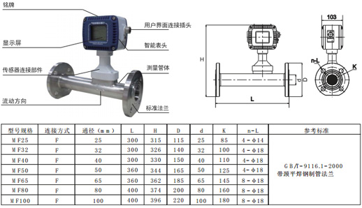 三、MF系列管道式質(zhì)量流量計(jì)產(chǎn)品結(jié)構(gòu)與機(jī)械尺寸: