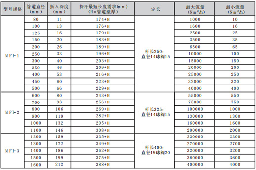 五、MFI系列插入式質(zhì)量流量計產(chǎn)品參數(shù)