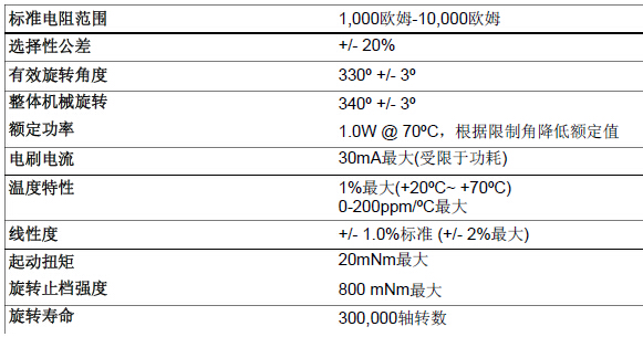 四、RPC系列 旋轉(zhuǎn)位置控制傳感器電氣規(guī)格: