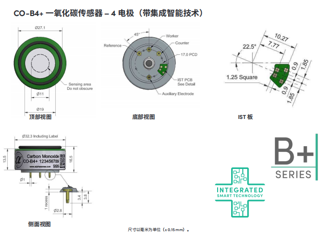 CO-B4 傳感器是一種 PPB傳感器,旨在用于環(huán)境空氣質(zhì)量應(yīng)用,具有很佳的基線穩(wěn)定性。該產(chǎn)品有我們的標(biāo)準(zhǔn)格式CO-B4?和具有我們專利的集成智能技術(shù)(CO-B4+),后者在傳感器中集成了帶有存儲(chǔ)芯片和溫度傳感器的 IST 板。