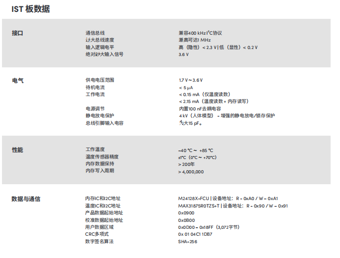 在每個(gè)傳感器上存儲(chǔ)特定的校準(zhǔn)、規(guī)格和識(shí)別數(shù)據(jù),允許即插即用操作。板載溫度傳感器提高了溫度補(bǔ)償算法的準(zhǔn)確性和簡便性。