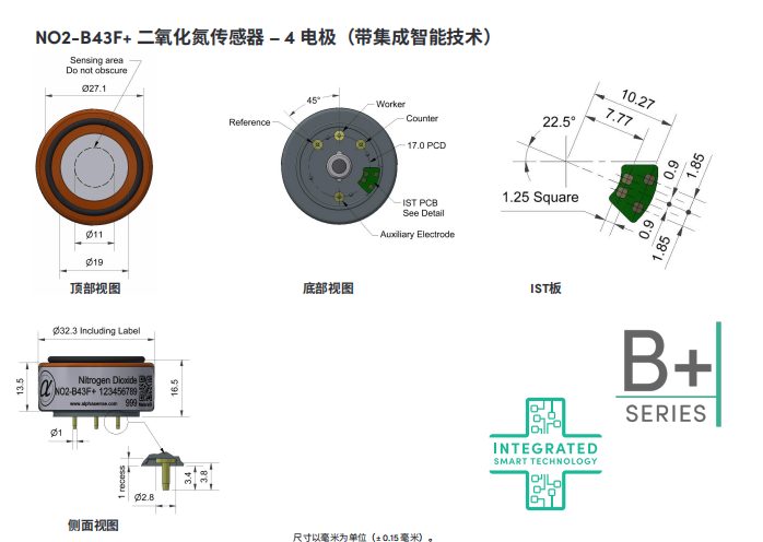 二氧化氮傳感器(NO2傳感器)NO2-B43F NO2-B43F+ IST板數(shù)據(jù):