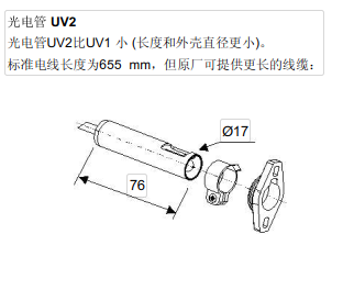 光電管UV2比UV1 小 (長度和外殼直徑更小)。