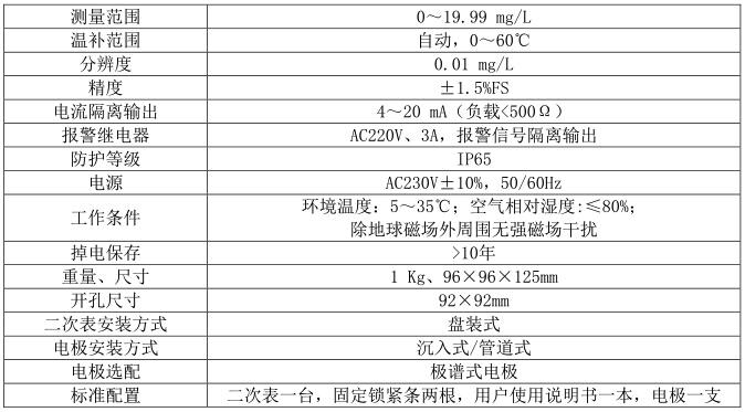 三、工業(yè)在線溶氧儀DO-200技術(shù)參數(shù)