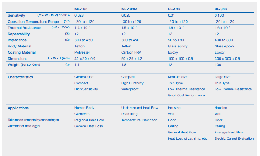 三、EKO 熱流傳感器 - MF-180M參數(shù)