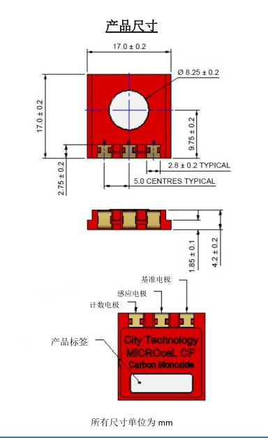 三、一氧化碳 (CO) 氣體傳感器?MICROceL ?CF 尺寸:
