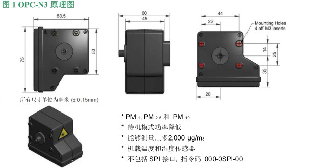 二、PM2.5傳感器/大氣粒子監(jiān)測(cè)器 激光傳感器 粉塵傳感器 OPC-N3參數(shù):