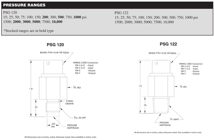 150 psi to 10,000 psi -2 mV/V