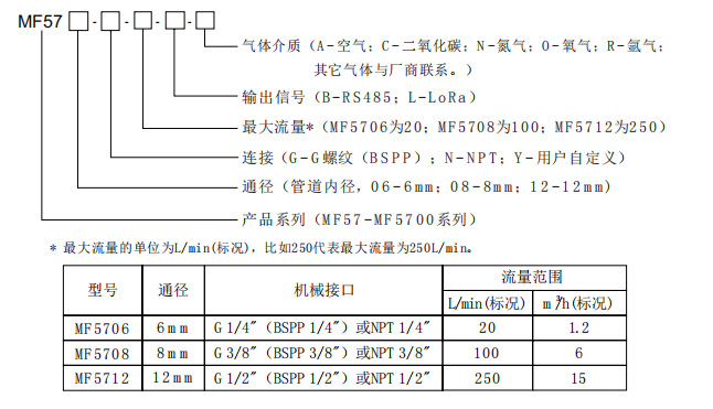 六、美國Siargo MF5700系列便攜式氣體質(zhì)量流量計(jì) 選型: