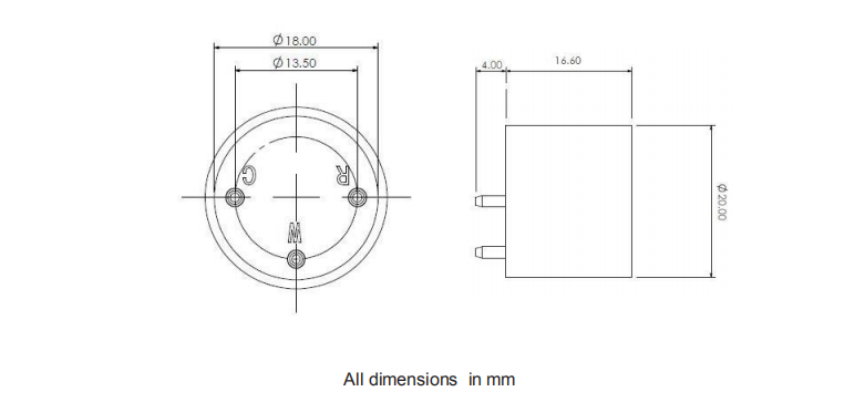 HCHO 甲醛傳感器(ES4-HCHO-100)外形結(jié)構(gòu)圖:
