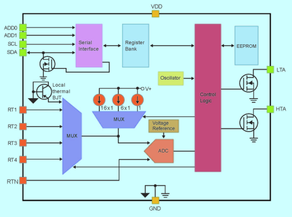 內(nèi)置 5 路測(cè)溫校準(zhǔn)系數(shù)的非易失性(NVM)存儲(chǔ)