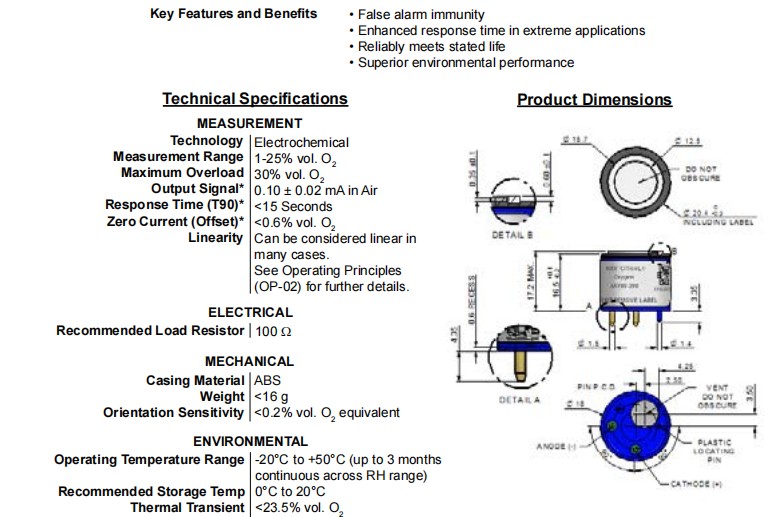 英國CITY 氧氣傳感器 O2傳感器4OXV 描述: