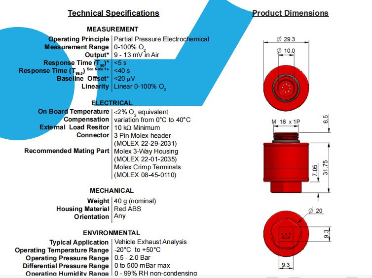 AO2 PTB-18.10使用于各類與氧氣測(cè)試相關(guān)的儀器中,如:機(jī)動(dòng)車尾氣檢測(cè)儀器,廢氣環(huán)保檢測(cè)儀器,氧指數(shù)測(cè)試儀器。