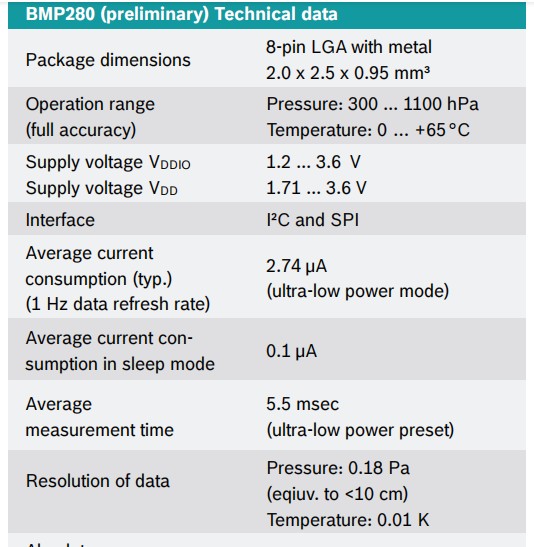 BOSH 壓力傳感器 BMP280 參數(shù):