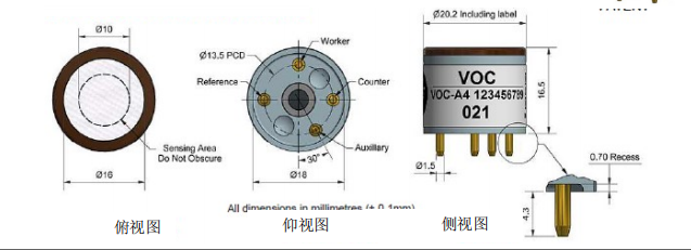 英國Alphasense 空氣質(zhì)量傳感器 VOC傳感器 ?VOC-A4 尺寸圖