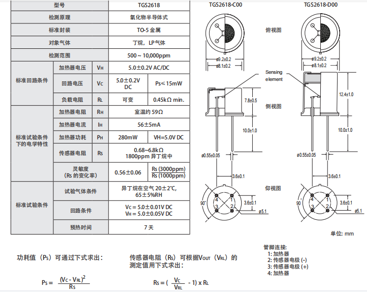日本figaro 檢測LP 氣體傳感器 TGS2618 尺寸: