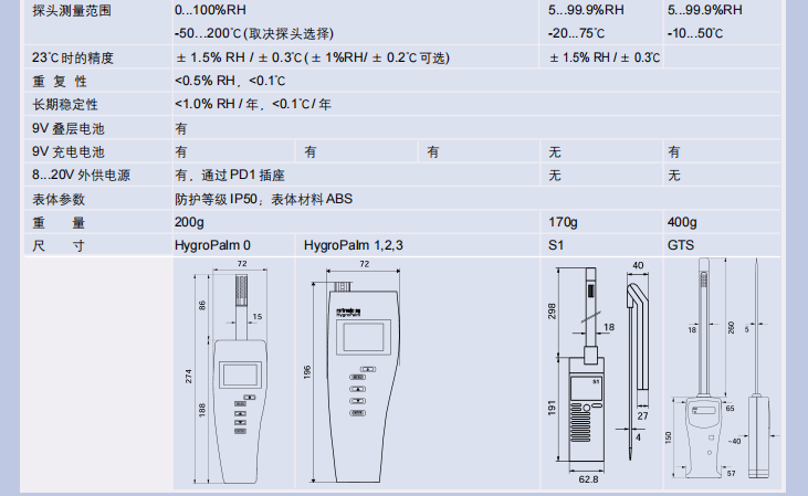 瑞士羅卓尼克Rotronic 溫濕度手持表 HygroPalm 1 參數(shù):