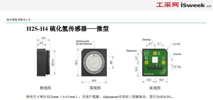 英國Alphasense H2S 硫化氫傳感器 電化學 微型 H2S-H4 參數(shù):