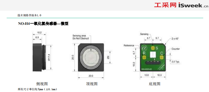 英國(guó)Alphasense NO 一氧化氮傳感器 電化學(xué) 微型 NO-H4 參數(shù):