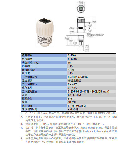 美國(guó)AII O2 氧氣傳感器 PSR-11-60-08 參數(shù):