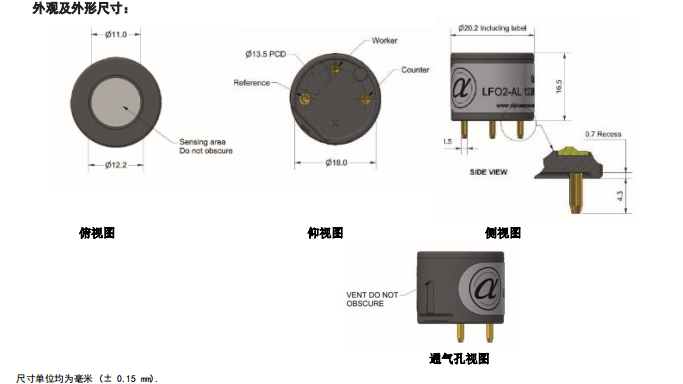 英國Alphasense O2 長壽命無鉛氧氣傳感器 LFO2-AL 描述: