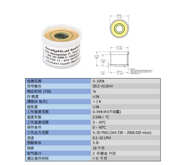 美國AII O2 氧氣傳感器  PSR-11-915  參數(shù):