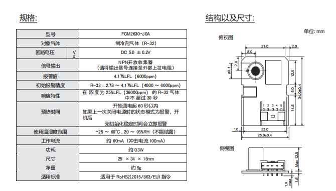 日本Figaro 用于制冷劑氣體R-32 的預(yù)校準(zhǔn)模塊 FCM2630-J0A 參數(shù):