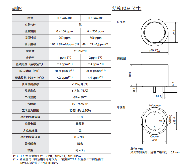 FECS44-200是一款非常獨特的電化學式氨傳感器。其顯著的特點是,受硫化氫的干擾很小,暴露在氨環(huán)境中有優(yōu)異的耐久性,還有其獨特的防泄漏構(gòu)造,這些特點使其成為各領域氨監(jiān)測器與檢測儀的理想選擇。