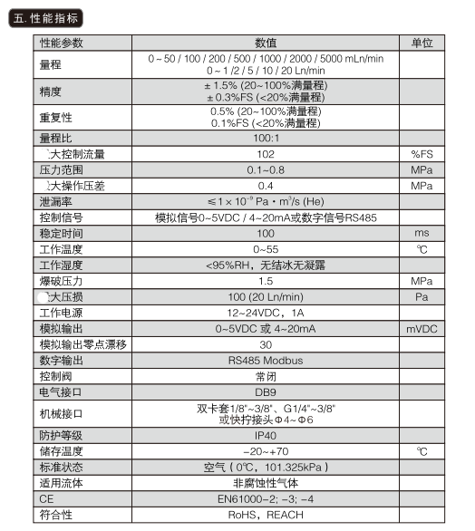 備注:mLn/min和Ln/min表示在標(biāo)準(zhǔn)狀態(tài)(0℃,101.325kPa)下的標(biāo)準(zhǔn)流量。