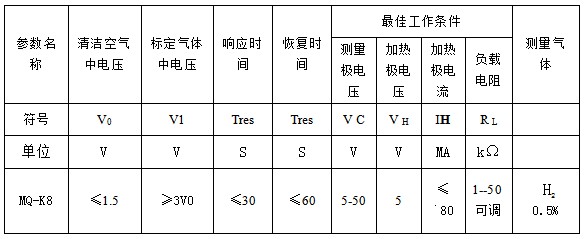 三、氫氣傳感器(H2傳感器)MQ-D8型規(guī)格型號(hào):