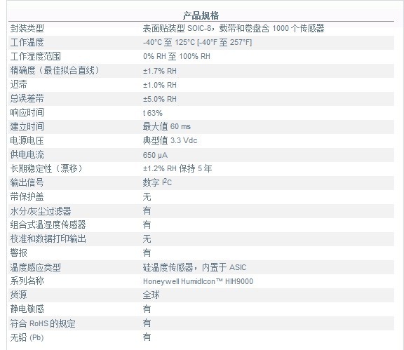 五、濕度傳感器HIH9000系列產(chǎn)品規(guī)格
