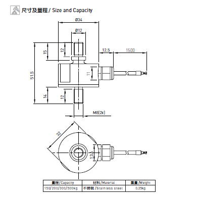 德國TECSIS 拉壓雙向力傳感器 - F2813