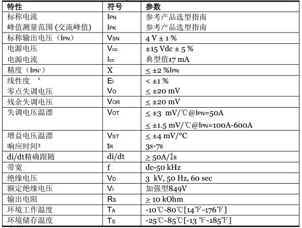 CSCA-A系列霍爾效應(yīng)開環(huán)電流傳感器規(guī)格參數(shù)
